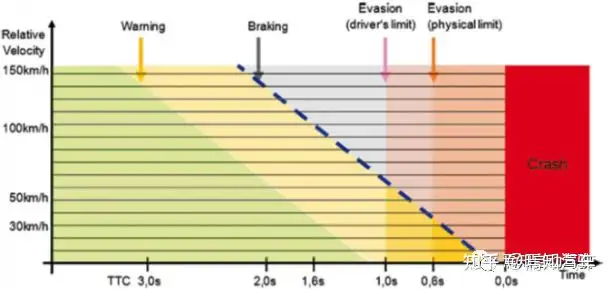 目前的技术条件下,AEB系统的设计用途不是保证车辆不会发生追尾事故,而是起到响应辅助及应急辅助的作用,其设计思想如下: