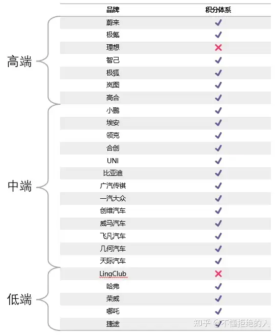 我们先来看对比一下目前行业车企APP积分体系的情况。