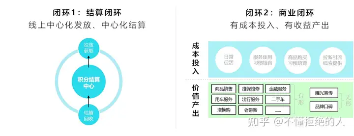 俨然蔚来已经把积分定位成社区中的硬通货,基本上需要用户法币来购买的商品&服务,在蔚来的社区里,都可以用积分来支付。要做到这一点并不容易,需要满足两个核心闭环: