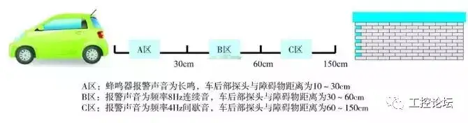 当探测到的距离在侧部小于20cm,或在中部正后方小于30cm时,声响信号将变为持续音以避免碰撞保险杠。