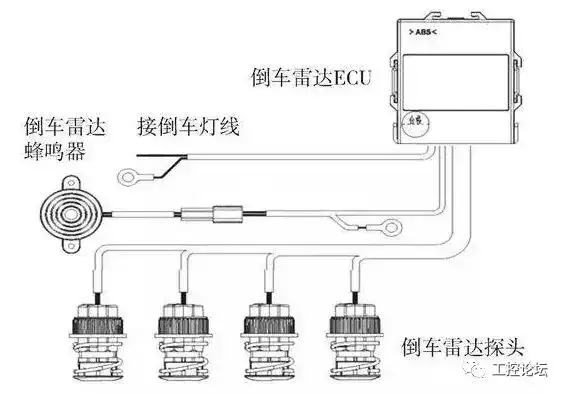 倒车雷达系统由倒车雷达ECU、倒车雷达蜂鸣器及数个(通常为4个)安装在(后)保险杠上的倒车雷达传感器等组成。如果安装后摄像头,则会在导航屏上提供车辆后部区域的图像。