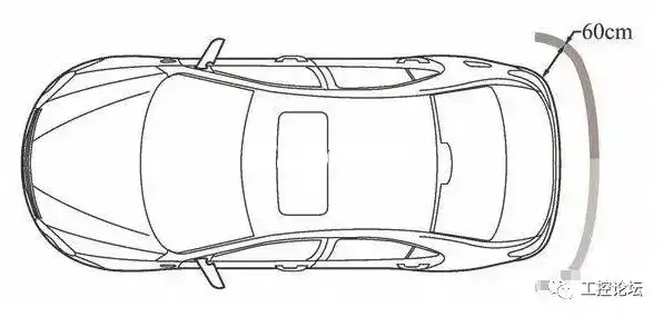 侧面两个传感器的检测范围是距离保险杠拐角处60cm 的区域。